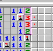 紫框中的2332,每个数字周围都有1个雷通过其他方式判出,因此真实数字为1221。