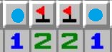 比如图中,3周围有两个雷3-2=1,2周围有一个雷2-1=1,故简化为11模式,画点的两个格子可以直接打开。